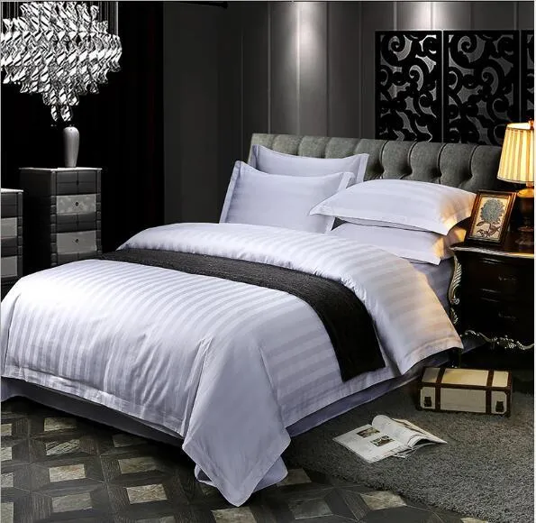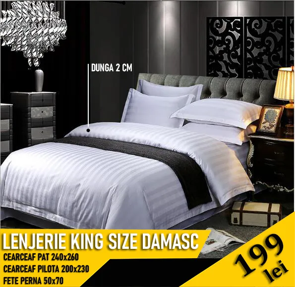 Lenjerie hotelieră Damasc King Size – Bumbac Satinat cu Dungă 1 cm
